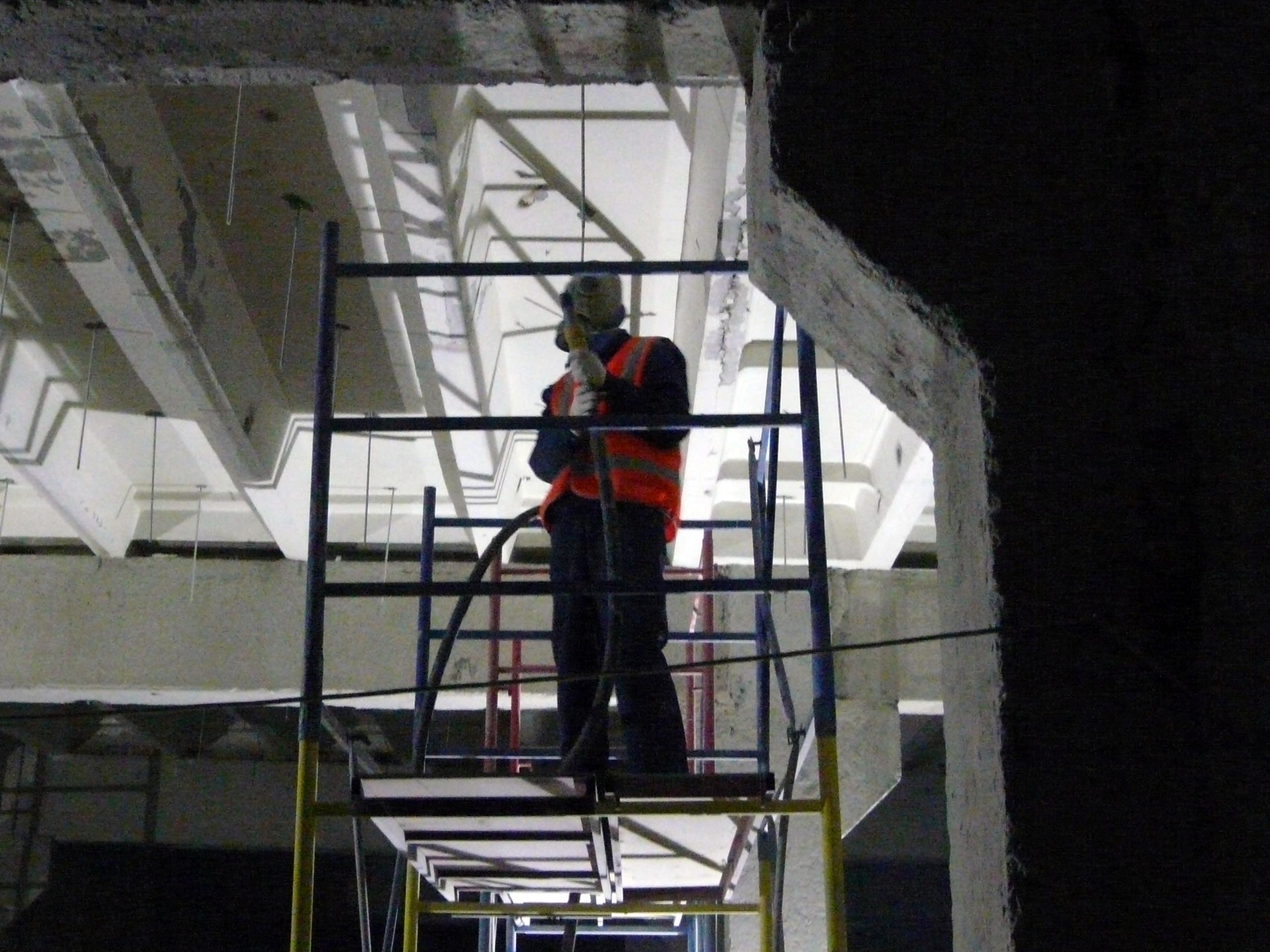 При помощи абразивоструйной очистки с металлических конструкций удаляют старую краску, ржавчину и другие загрязнения. Кроме того, при струйной очистке удаляется вторичная окалина, которая образуется на новой стали.